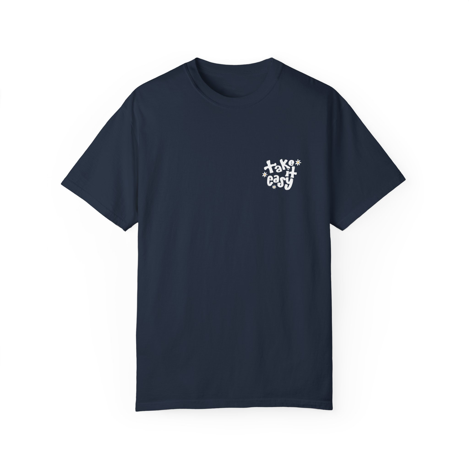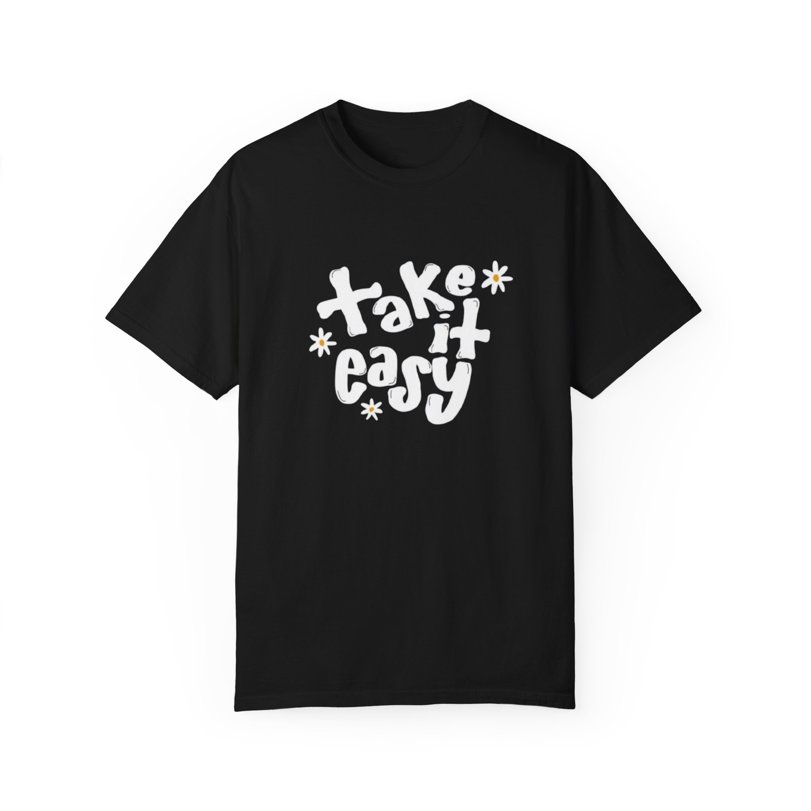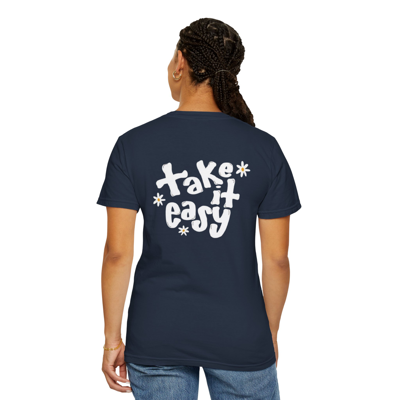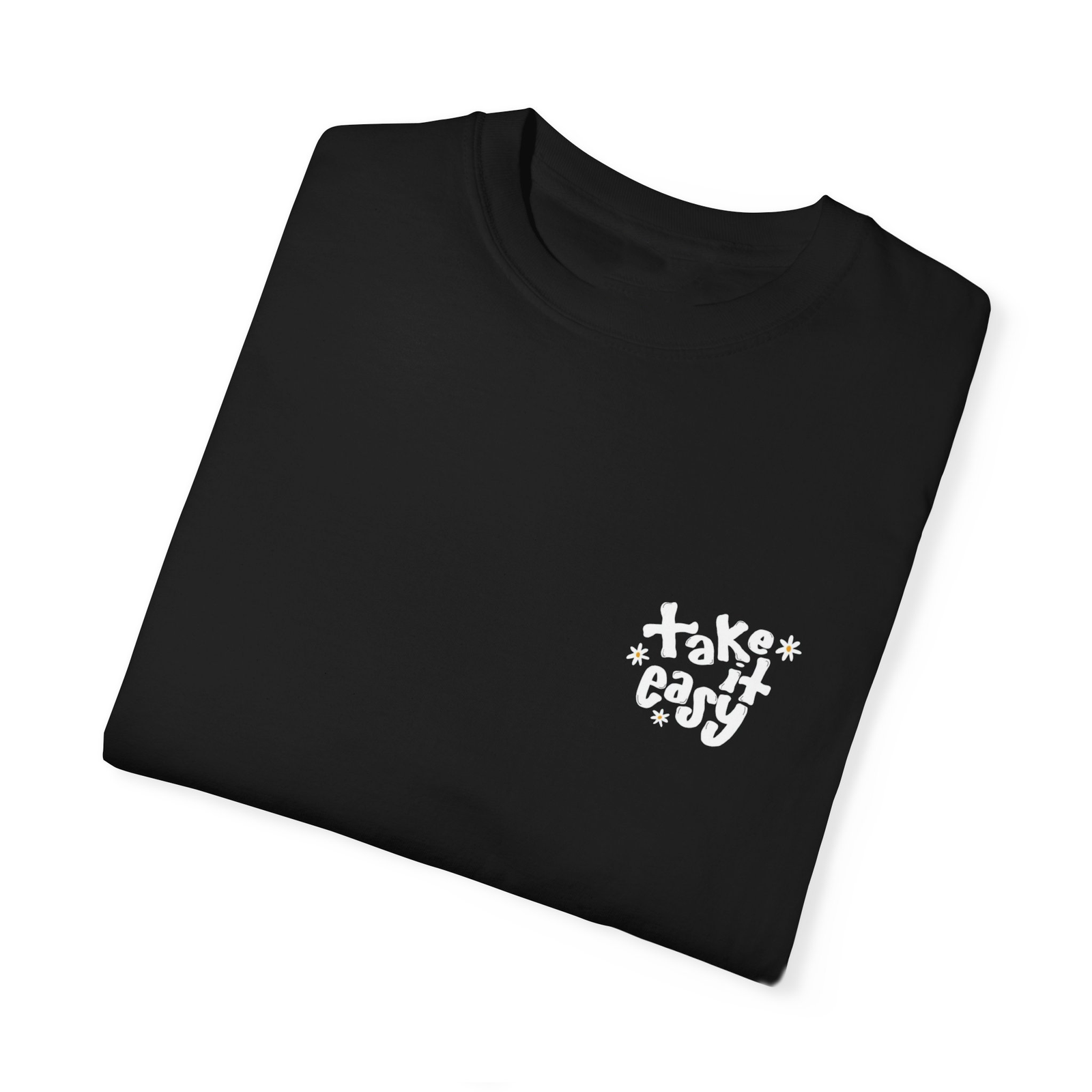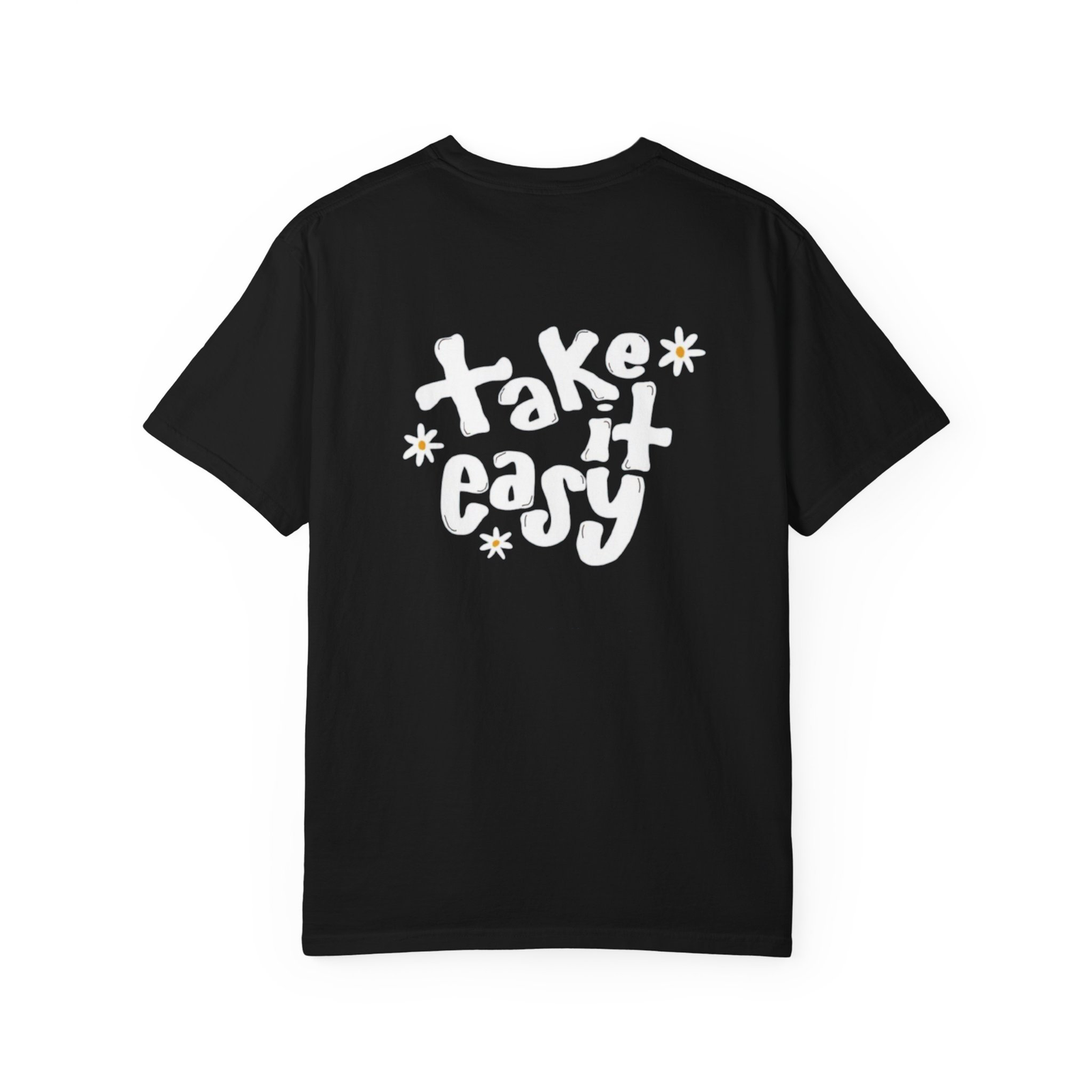 Relax and stay cool with the Take It Easy Tee! Featuring a bold and laid-back design with the text “Take It Easy” in playful, retro typography, this tee is all about good vibes. Available in front-full, Back-full and left-corner placements, and in classic black and navy colors, it’s perfect for those who love comfort with a bit of style.